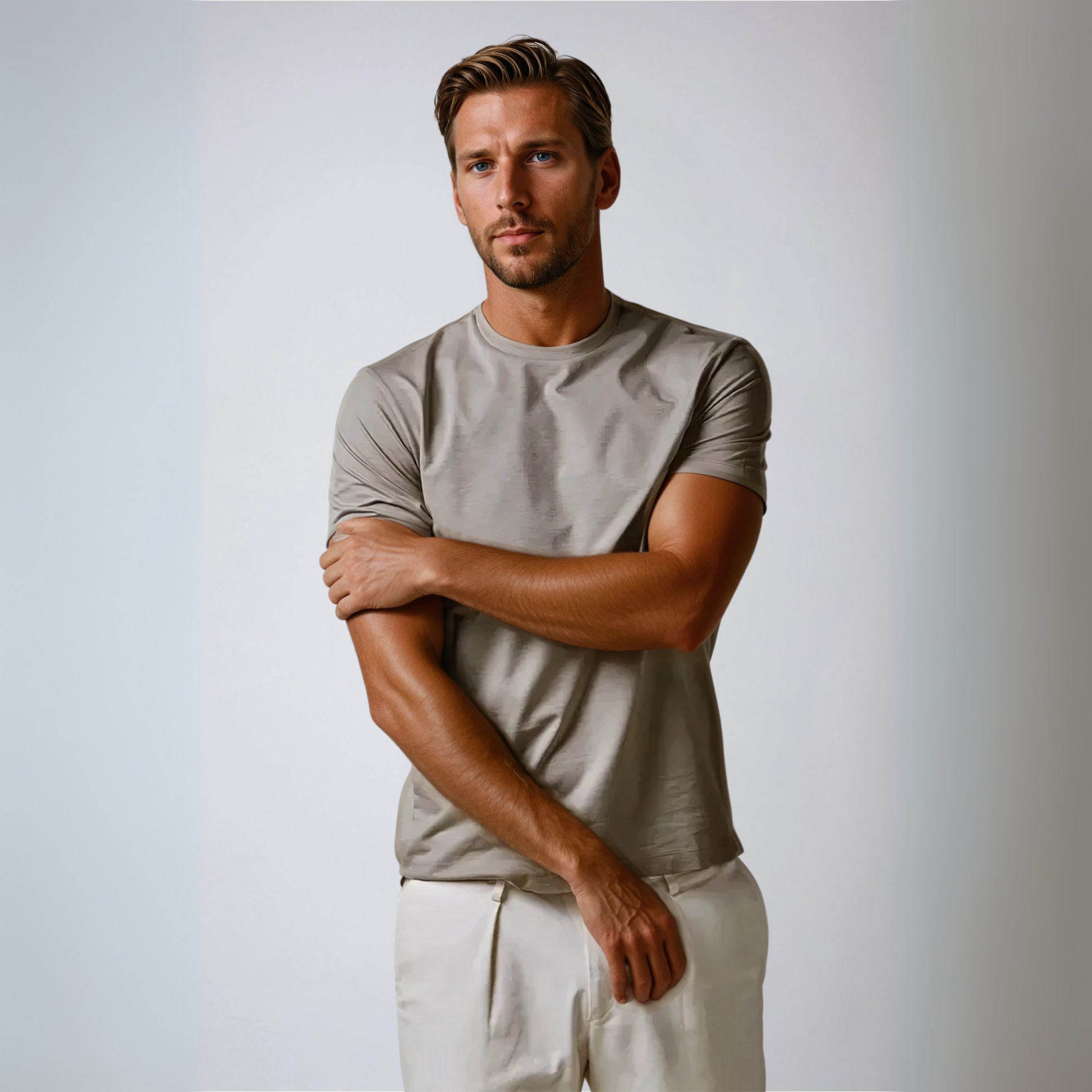 Experience the refined elegance of the Caesar - Signature Supima Taupe T-Shirt. Designed for men who value both versatility and sophistication, this premium T-shirt blends luxury, comfort, and a subtle yet stylish hue. Perfect for casual and semi-formal occasions alike.